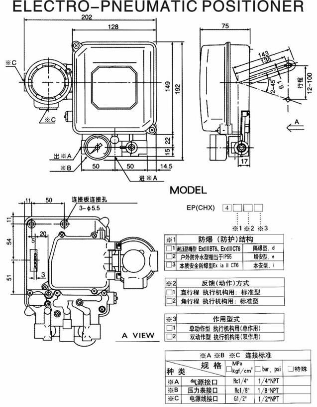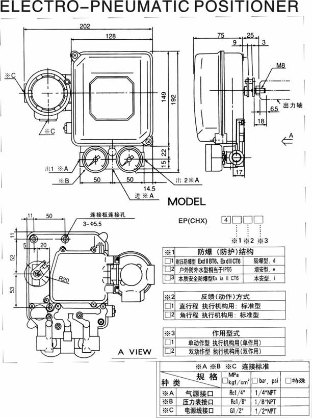 1.型號:例EP4111; EP4311;或EP4322; EP4122電氣閥門定位器